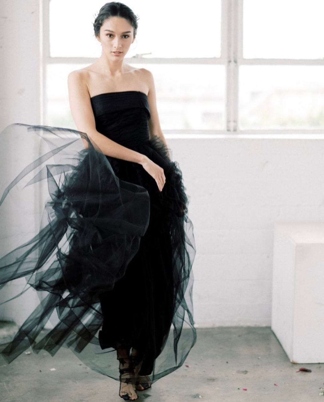Tulle - Simple Gothic A-Line Wedding Dress, Black