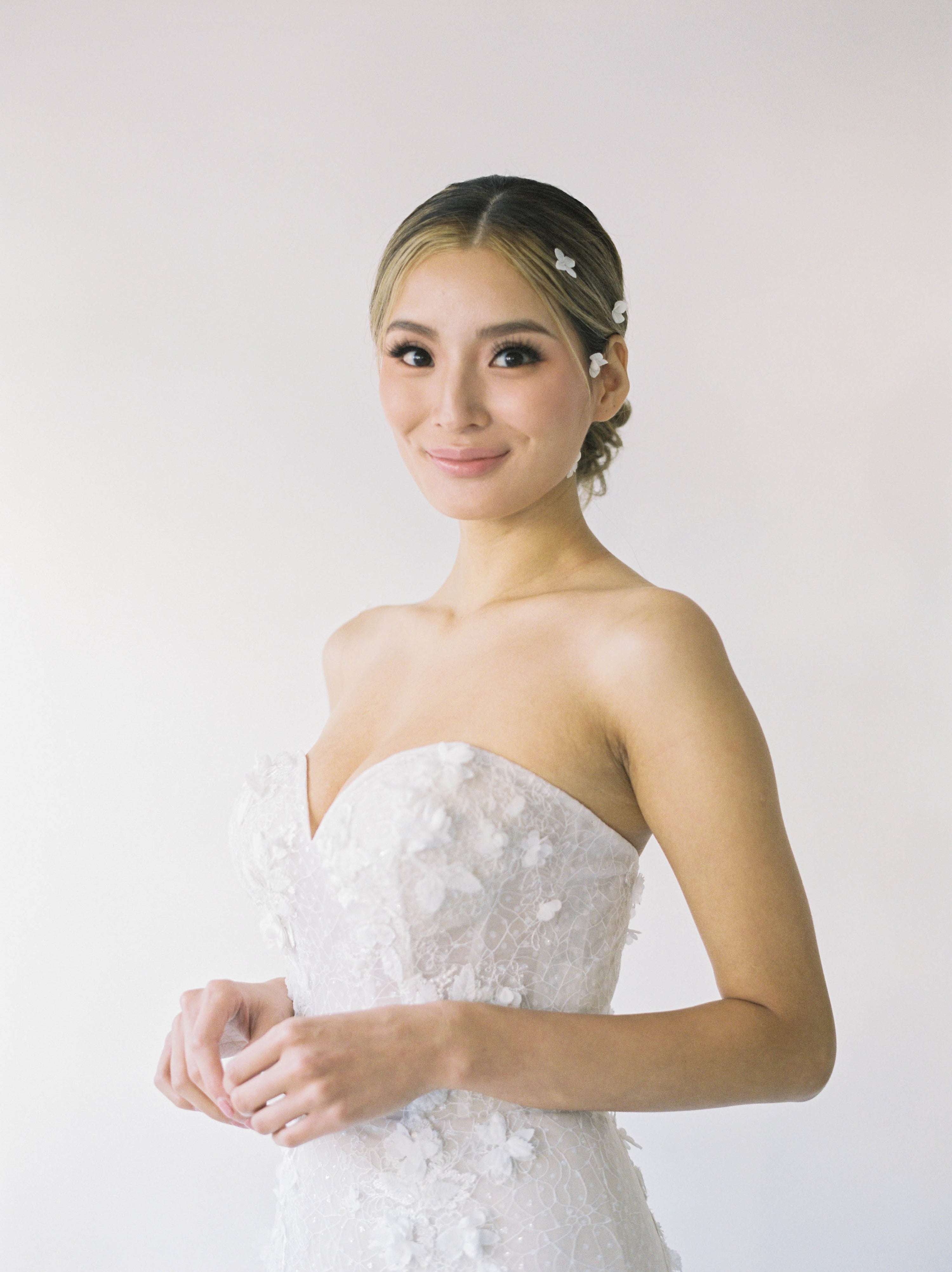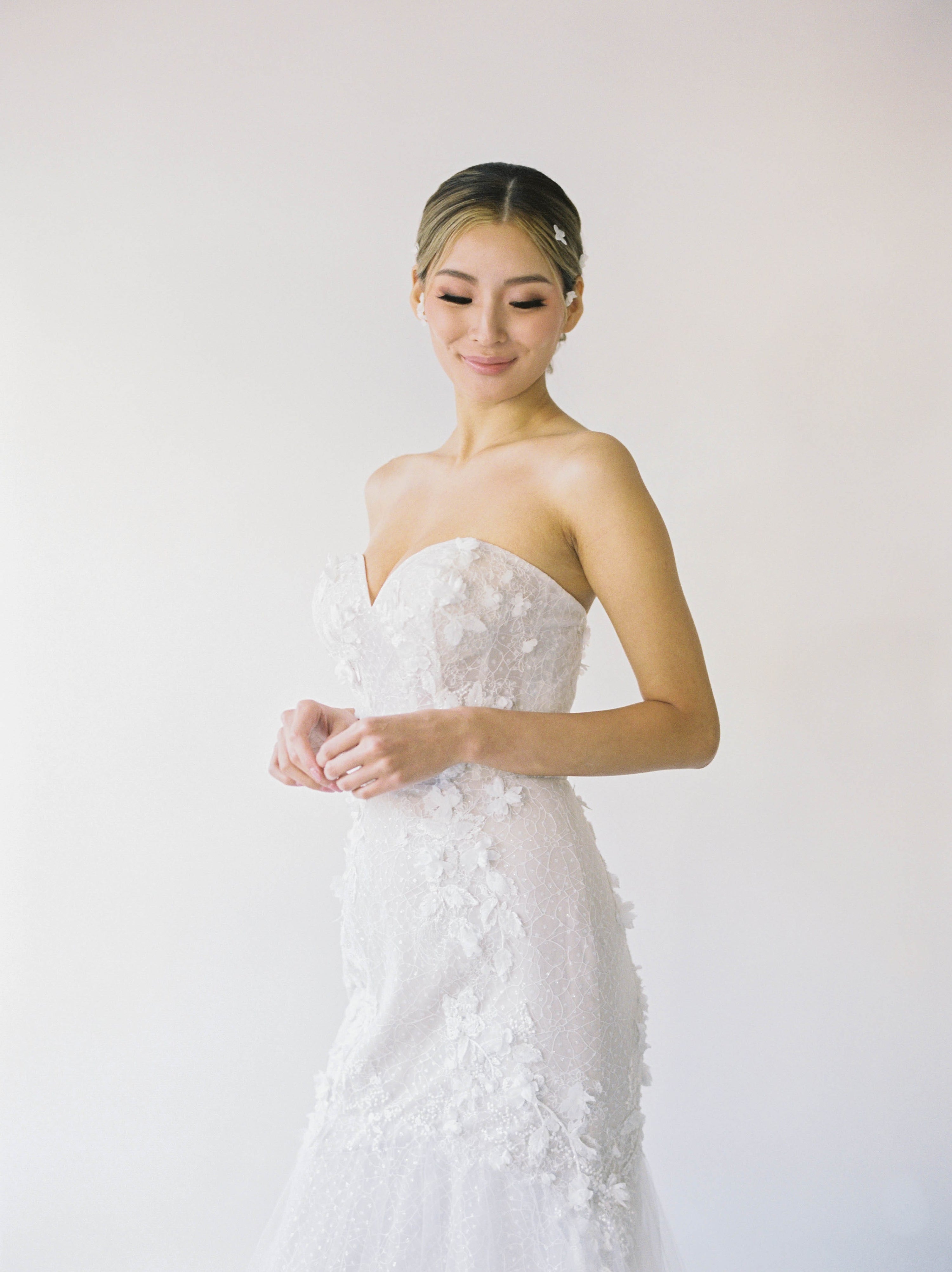 Elevate your bridal elegance with our exquisite Mermaid Wedding Dress. This gown is a stunning masterpiece featuring intricate 3D lace detailing that adds depth and dimension to your look. The strapless design showcases a minimalist, yet undeniably elegant silhouette that accentuates your natural beauty.