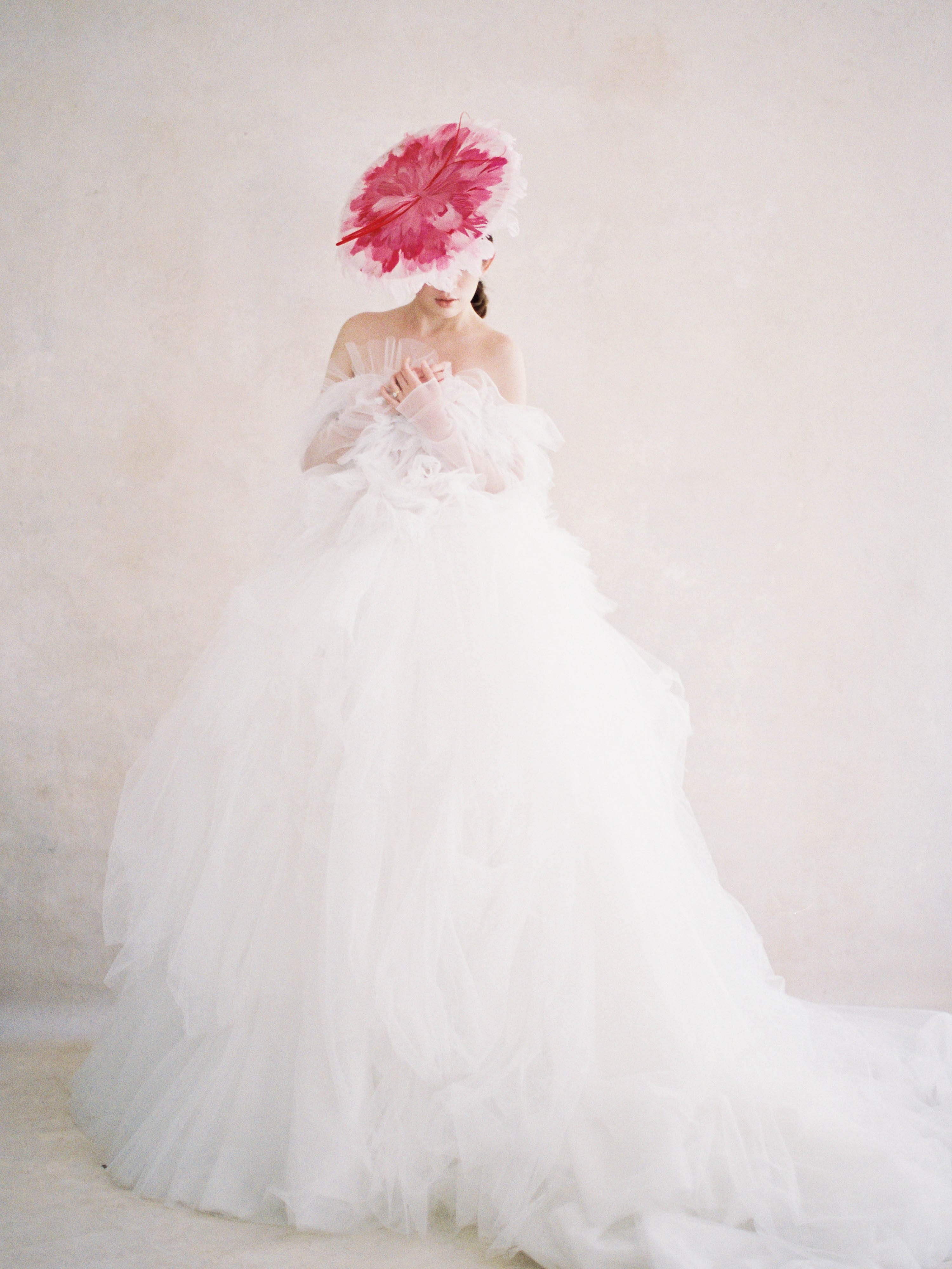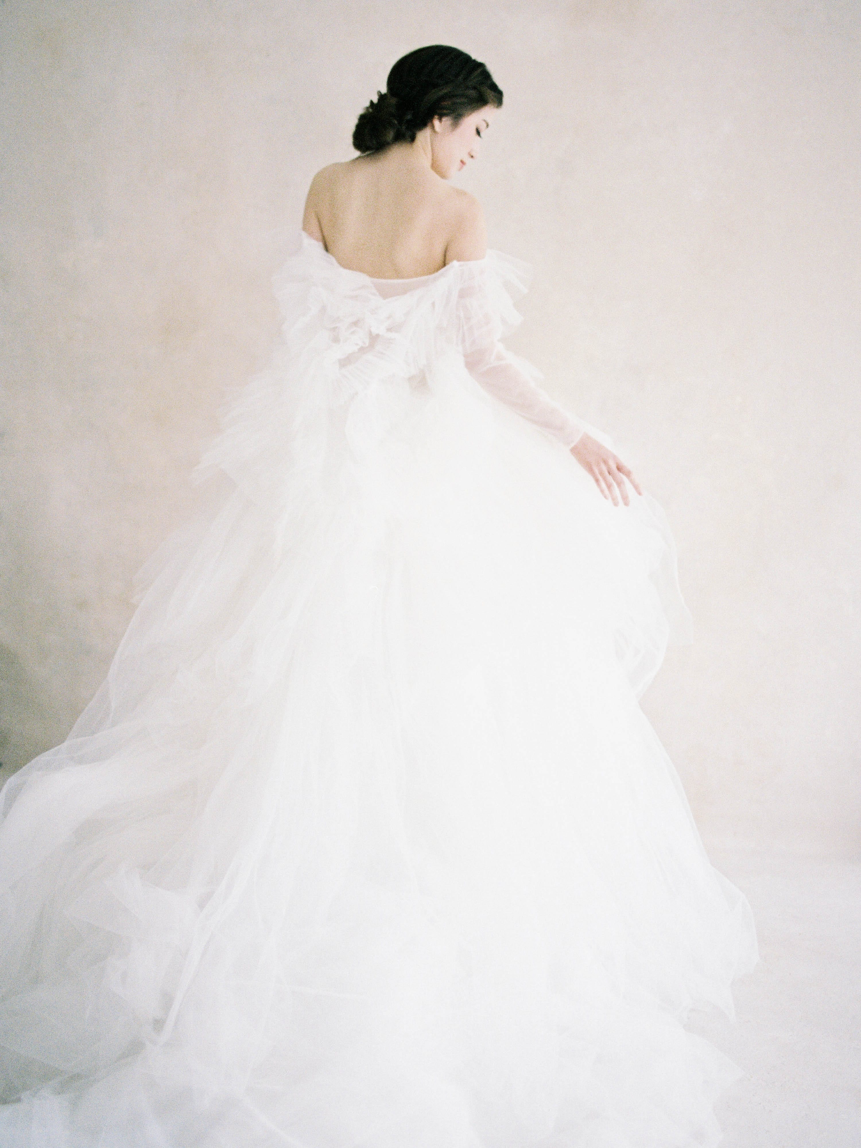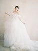 Indulge in the epitome of bridal elegance with our Silk Tulle Ball Gown Wedding Dress. Crafted from 100% silk tulle, this gown features long sleeves and a layered tulle top paired with a puffy, layered tulle skirt. The result is a dreamy and royal look fit for a modern bride with a taste for the extraordinary.