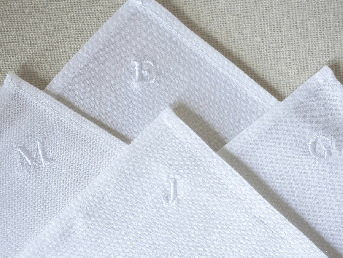 Cotton - Personalized Handkerchief with Machine Embroidery for Groomsmen, White