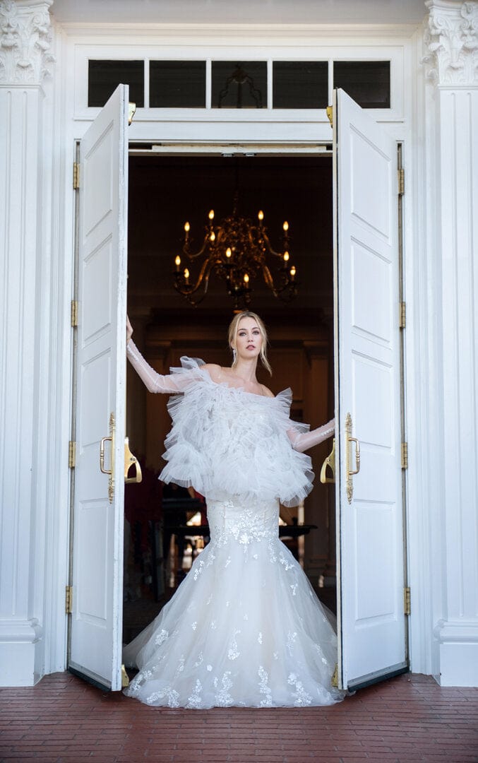 This ensemble is perfect for couples planning an outdoor ceremony followed by an indoor reception. Embrace the dreamy ambiance of an outdoor setting, and when it's time to transition indoors, add the jacket for an extra layer of style and comfort.
